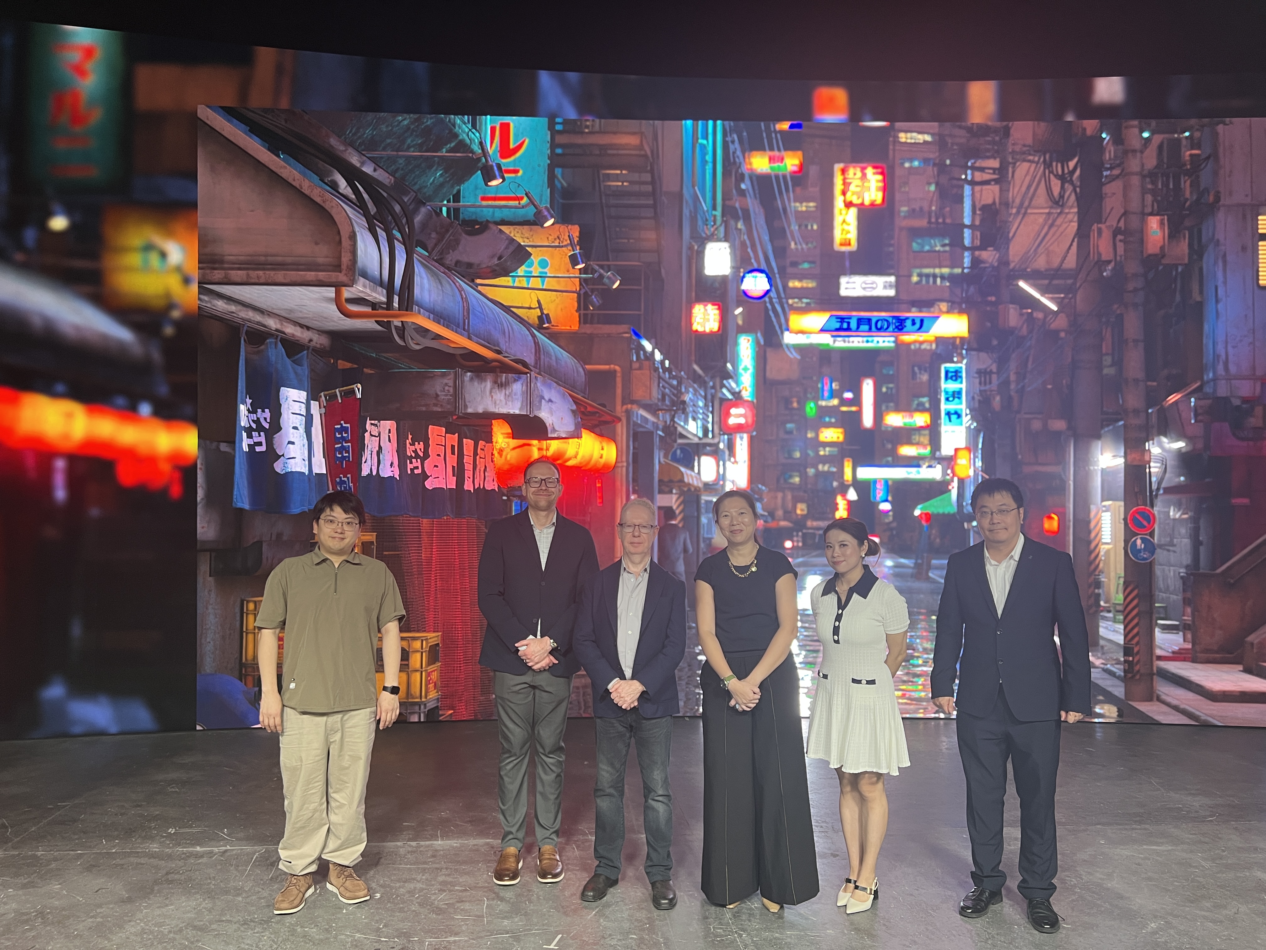 The delegation toured HKDI Virtual Production Studio, the largest educational filming studio in Hong Kong. Equipped with international-level professional virtual production facilities, the studio serves both students and in-service professionals, advancing standards in virtual production in Hong Kong.
