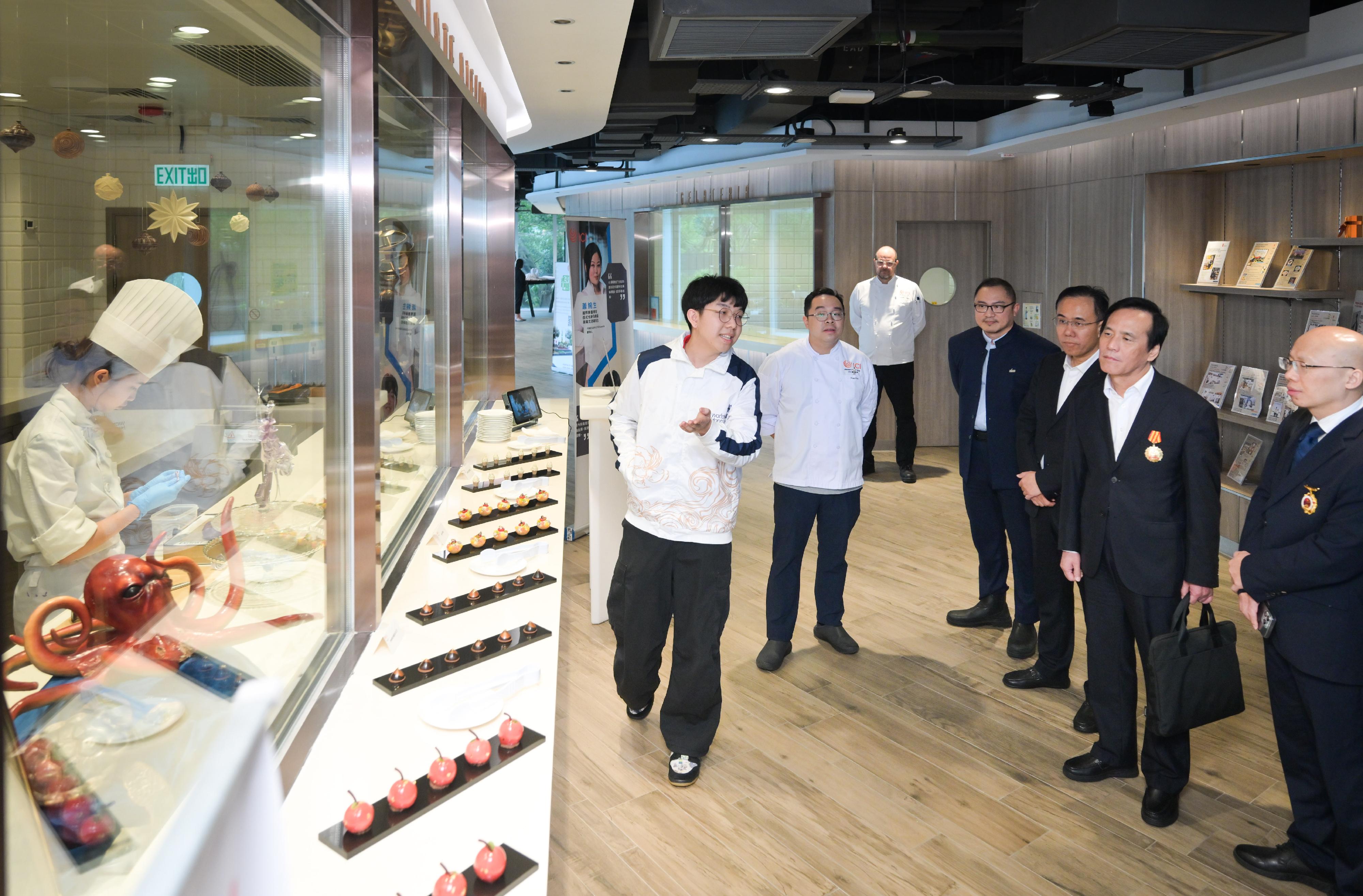 Accompanied by VTC Chairman Mr Tony TAI and Executive Director Mr Donald TONG, the delegation visited professional training facilities at the Chinese Culinary Institute, the Hotel and Tourism Institute, and the International Culinary Institute. During the visit, they engaged in meaningful exchanges with VTC students and WorldSkills Competition competitors.